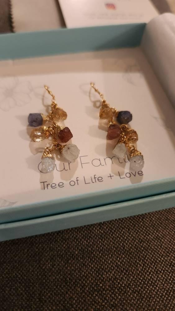 Unique Personalized Raw Birthstone Crystal Earrings for Mother's Day, Family Birthstones Dangle Drop Earrings, Crystal Sets Gifts