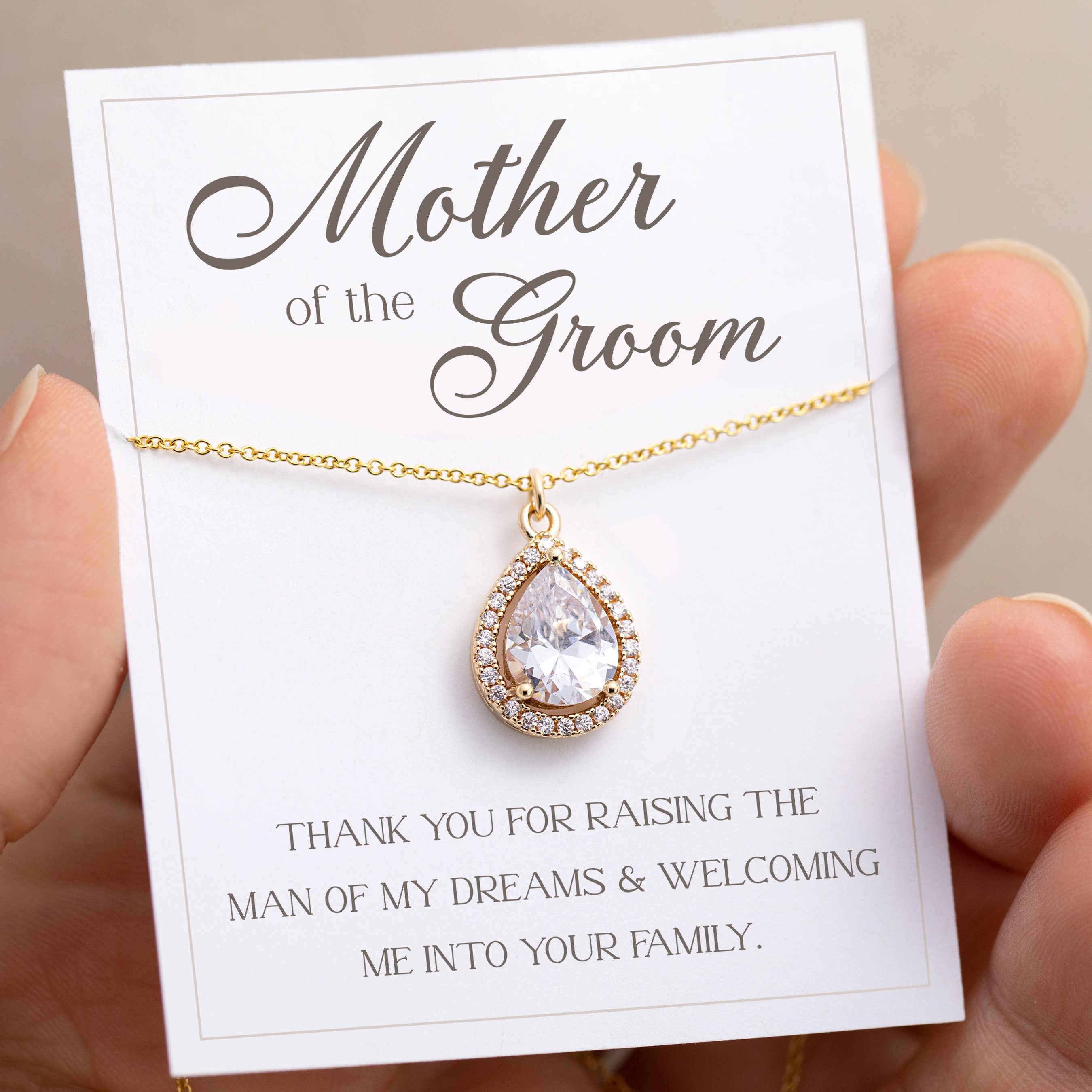 ✨ A beautiful and delicate Cubic Zirconia teardrop pendant hanging from a real high quality 14k gold filled chain. Select from our preset message options or a custom card that we are happy to make for you.