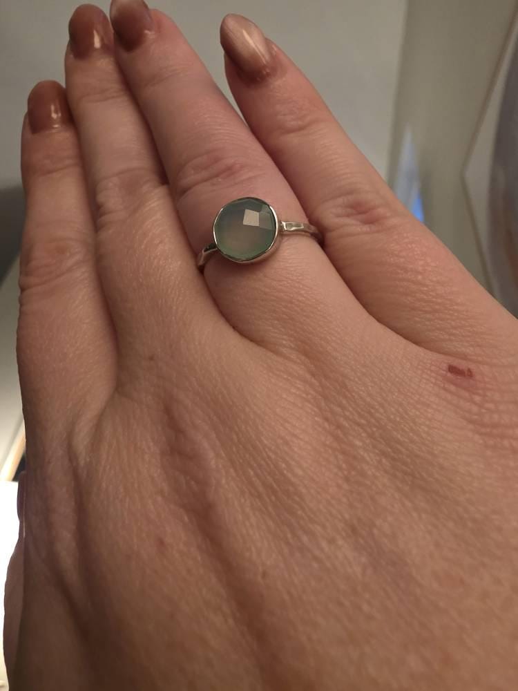 Aqua Blue Chalcedony Stackable Ring. Perfect for stacking with our other stone rings. Available in 18K Gold Vermeil or 925 Sterling Silver. Please select size and metal option from drop down menu.
