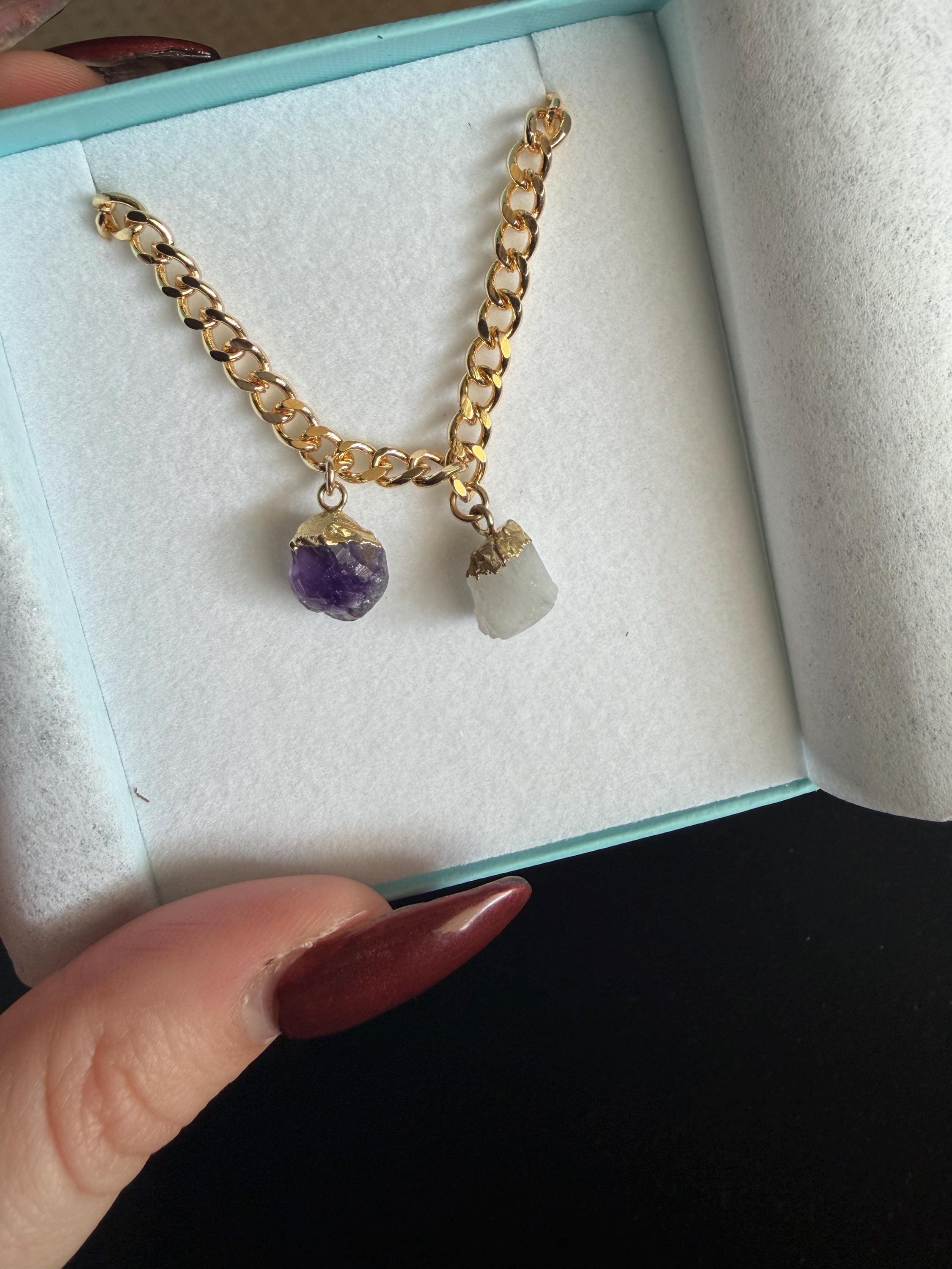 ✨ These are 100% natural raw gemstone nuggets in their most organic state. Attached to a chunky curb chain with a toggle clasp closure. Available in both Gold and Silver finish.