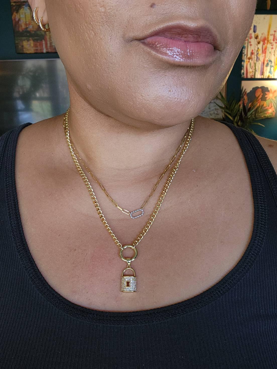 Build Your Own Charm Necklace, Paperclip Curb Chunky Chain Carabiner Clasp, Zodiac Birthstone Initial Pave CZ Charms Vintage, Trendy Jewelry