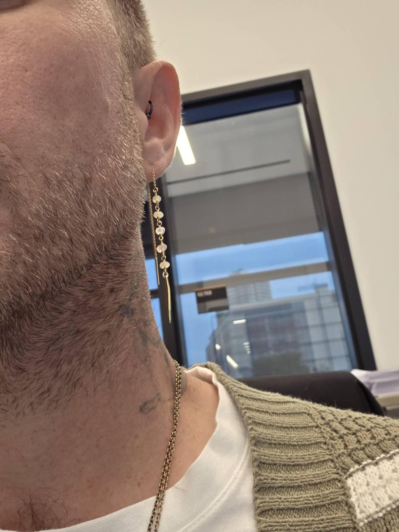 ✨ These unique threader earrings feature gemstone beaded chain and Gold Vermeil spike charm. They can be threaded through one or multiple piercings and are lightweight & perfect for everyday wear!