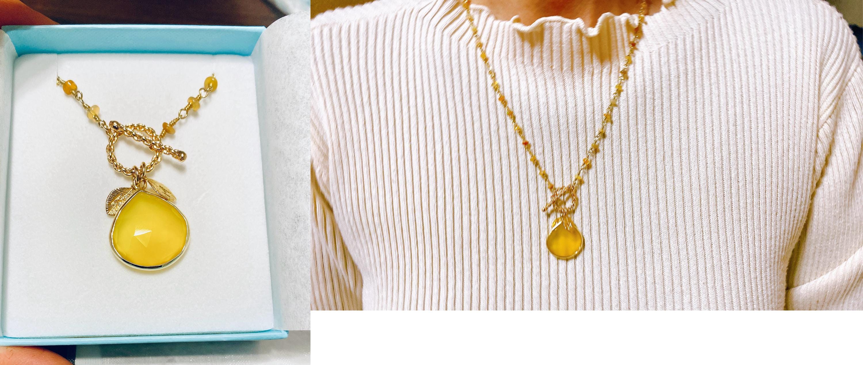 I am absolutely in love with this gorgeous necklace that I purchased as a 60th birthday gift for my mother. The Yellow Chalcedony pendant is vibrant and exactly as beautiful as I imagined it would be. What truly makes this piece unique is the chain, which features delicate Ethiopian Opal beads—they add a lovely subtle sparkle and unique color. My mother was so thrilled with it! The quality is exceptional, and it was truly a special gift. I specifically requested a slightly longer chain, and it looks incredibly elegant and chic when she wears it. It was the perfect, stylish piece for her milestone birthday. Thank you for creating such a stunning piece of jewelry!