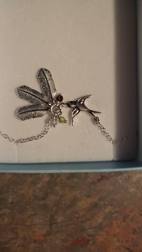 This is an amazing one of a kind customizable Birthstone Mama Bird and Baby feather necklace. Everything is customizable.