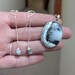 I love the raw simplistic style. I've been waiting to get these for a very long time to match my dendrite necklace. The shipping was timely. I love them but I'm also a tad disappointed. I like small but I think the stone is a bit smaller and darker than expected so it's harder to see the dendrite pattern. They also make my ears swell up (allergic type reaction) so I'm not sure what type of material the actual earring is. I still try to wear them for shorter periods of time.