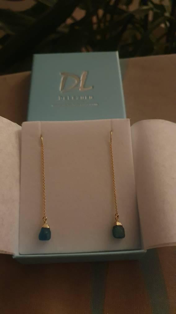 Raw Apatite Earrings, Blue Apatite Dangle Drop Earrings, Raw Stone Threaders, Simple Stone Earrings, Rough Cut Stone, Delicate Chain Earring