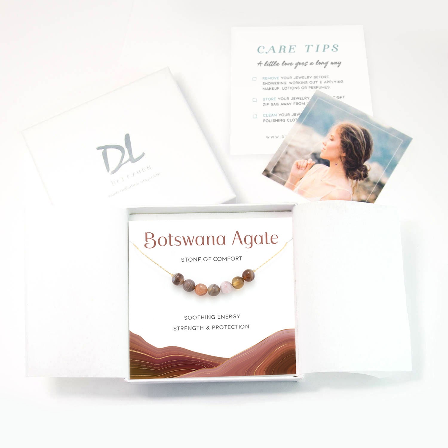 This will give details on the information we need from you :)All of our jewelry is individually packaged in a Delezhen branded jewelry box and we will happily include a gift note!