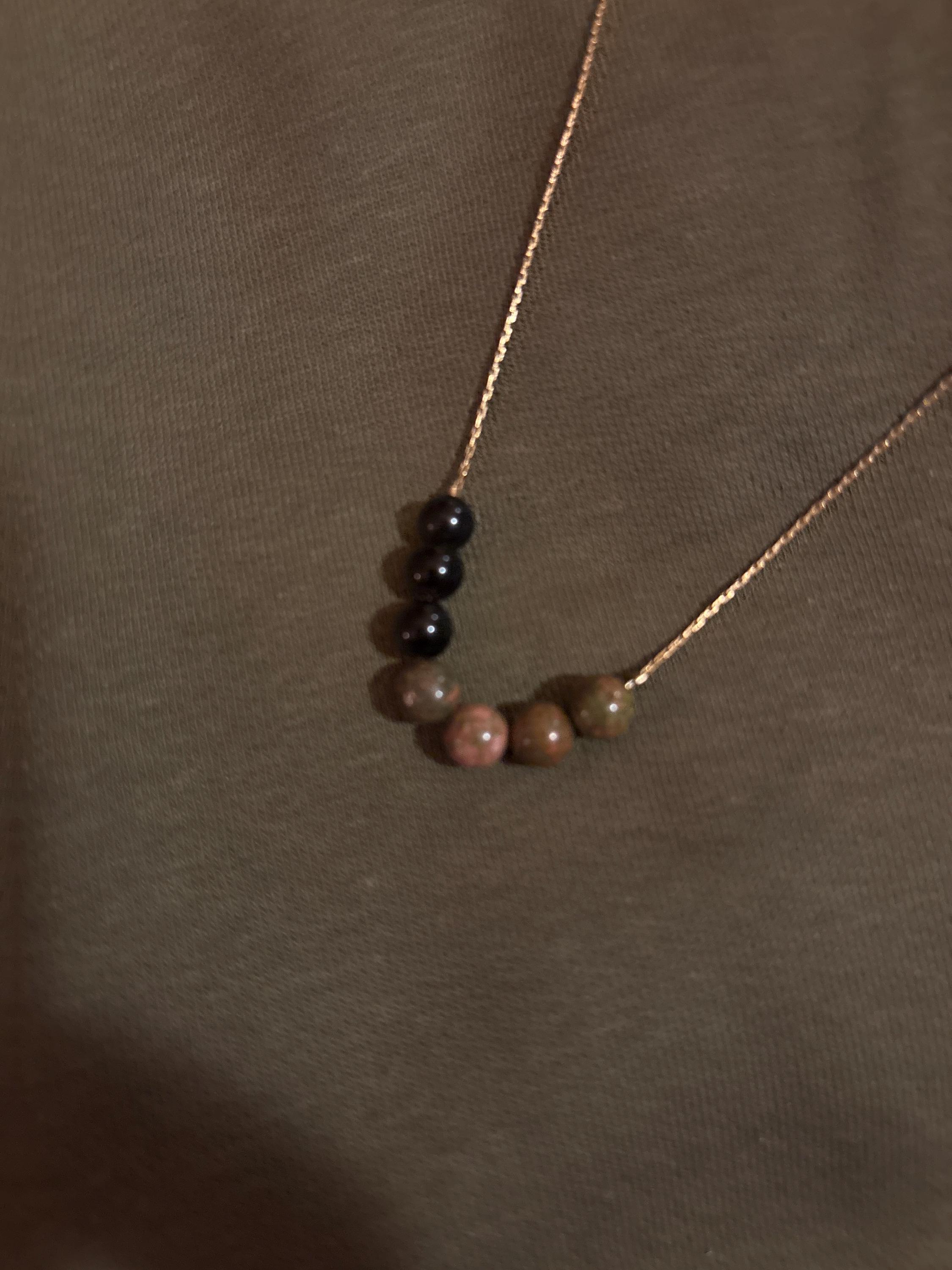 This necklace features 100% genuine polished gemstones threaded onto a dainty 14k Gold Filled, Sterling Silver or 14k Rose Gold Filled chain. Each gemstone bar contains beautiful inclusions and color variations.